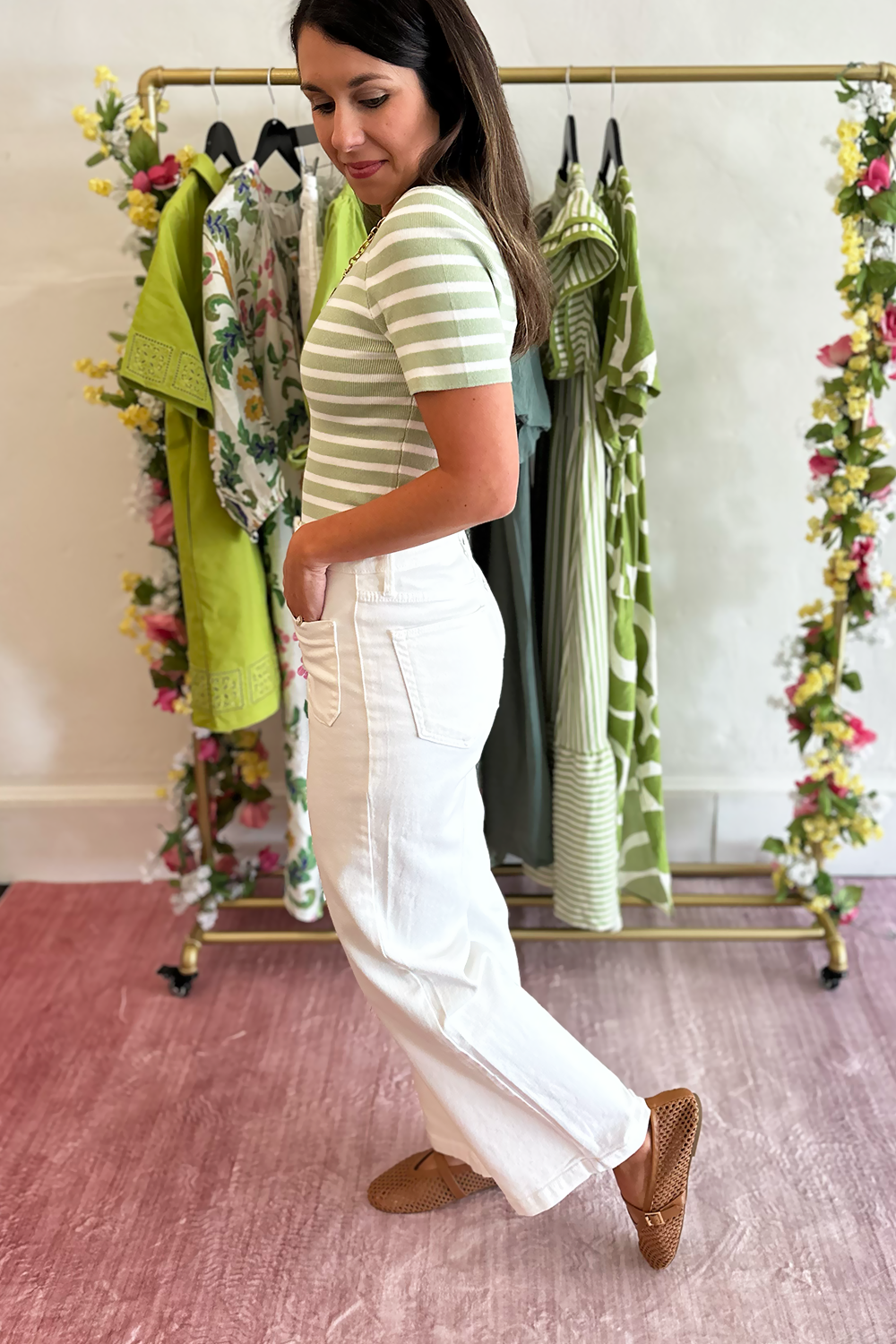 Patch Pocket Wide Leg Jean Off White - Truly Yours