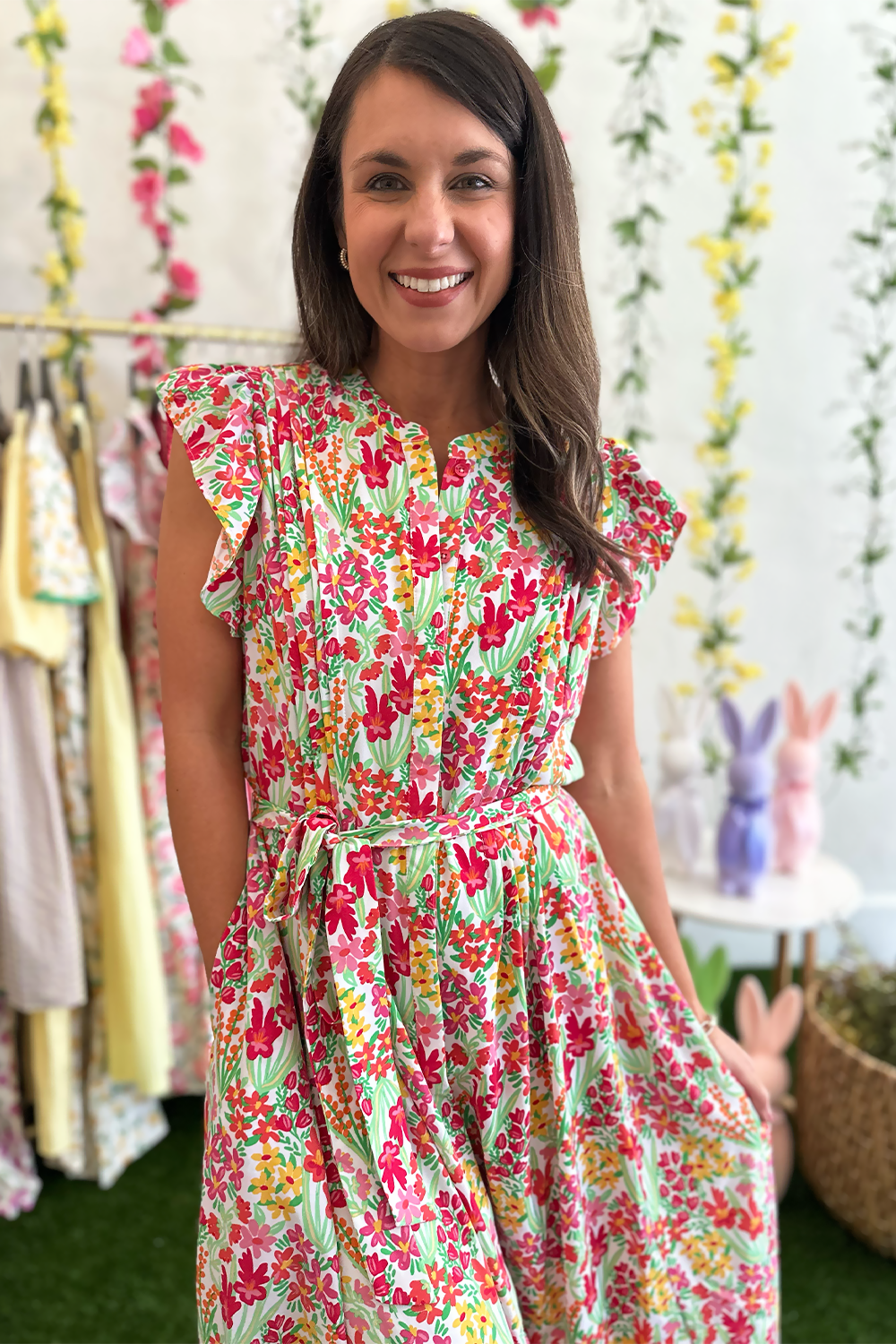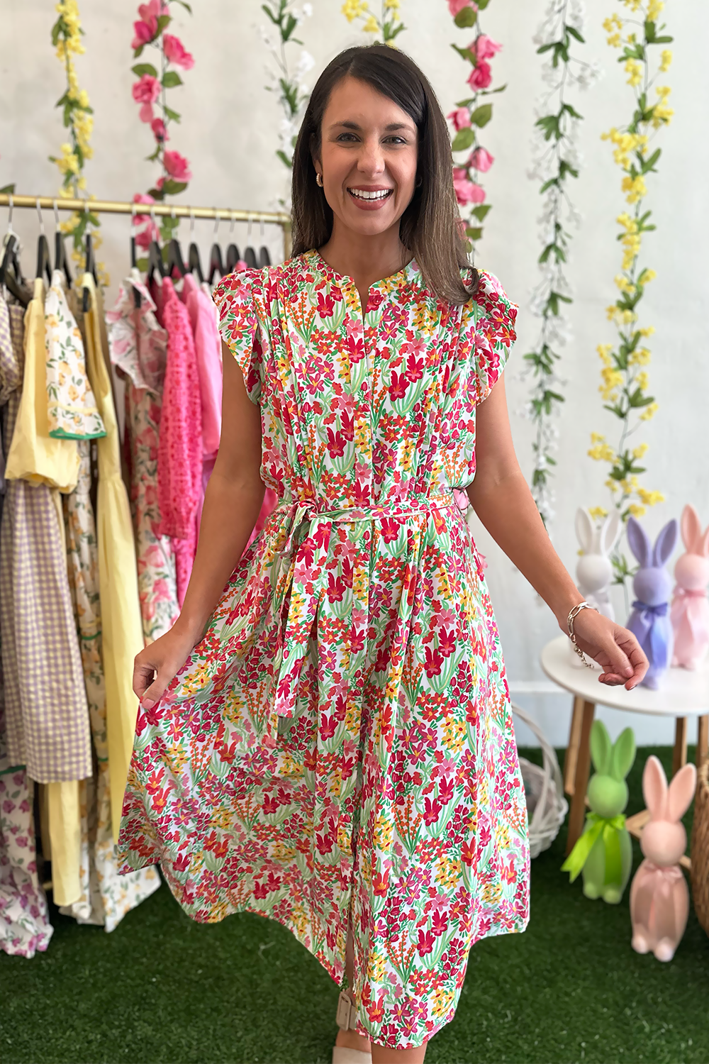 Imagine yourself twirling through a spring garden, the soft fabric flowing with every step, turning heads wherever you go. This dress isn't just an outfit—it's a confidence boost wrapped in beautiful florals.