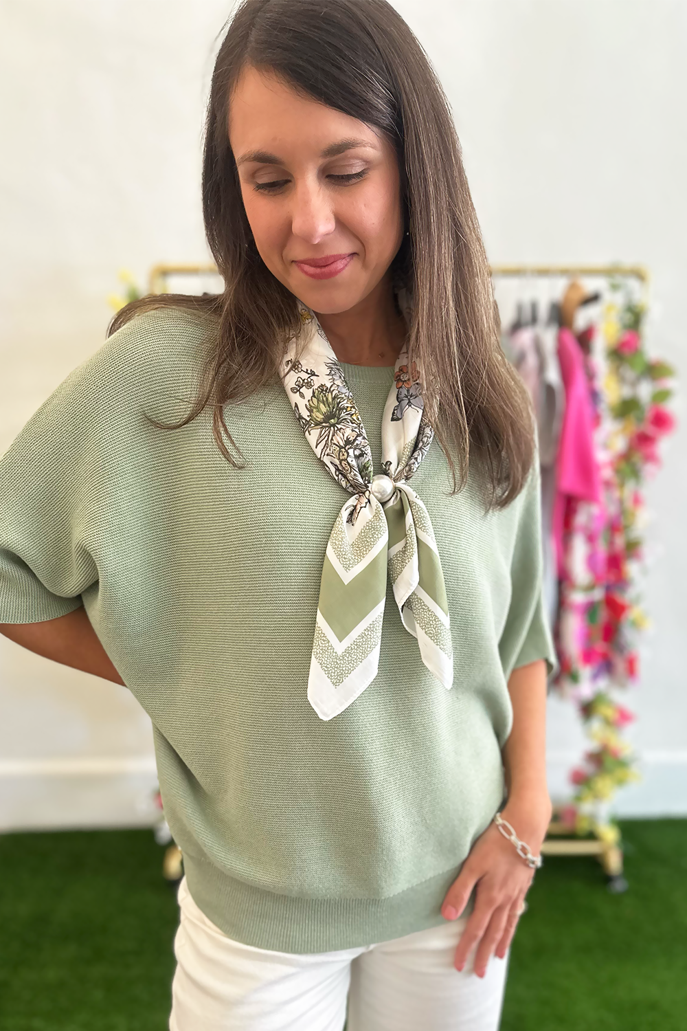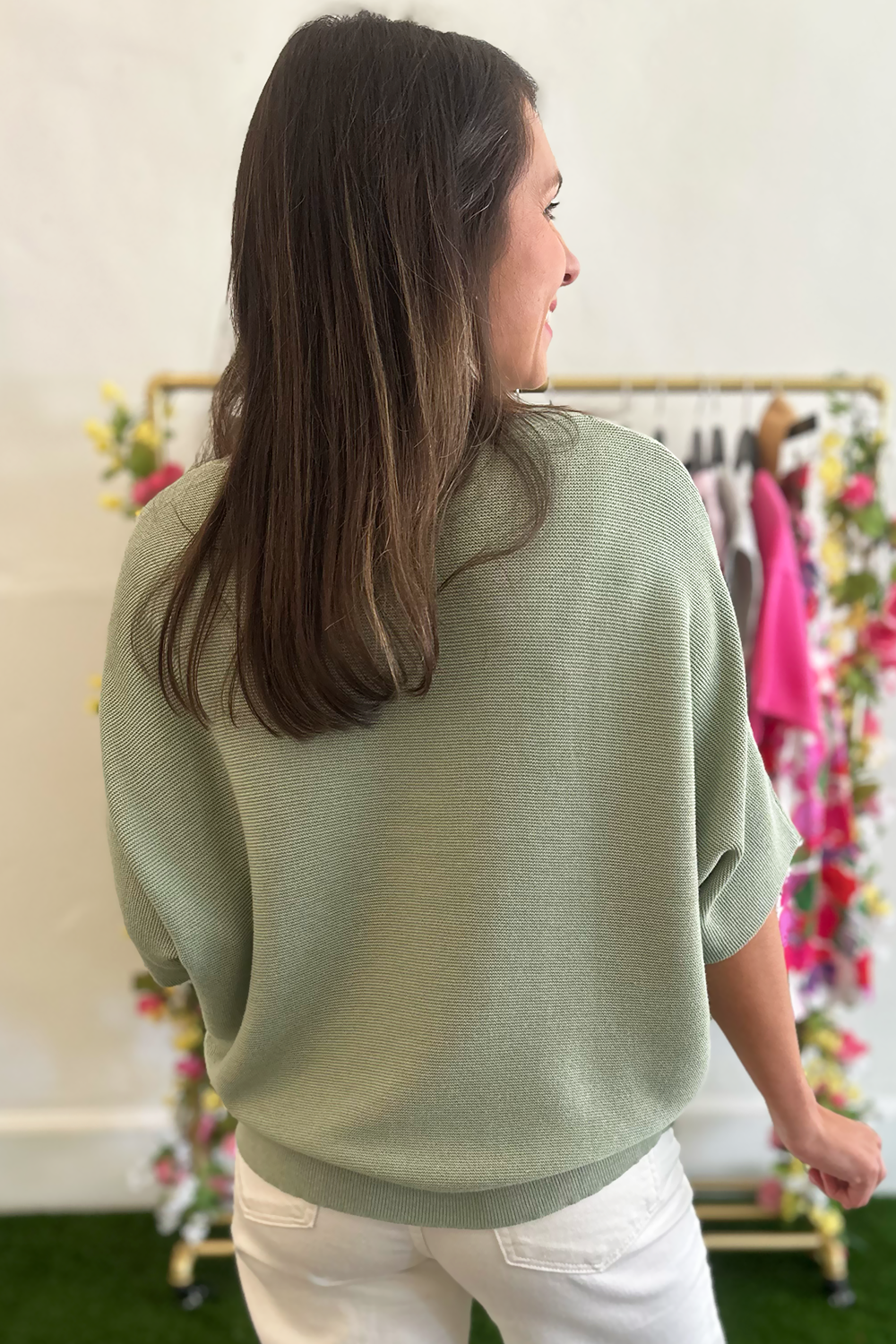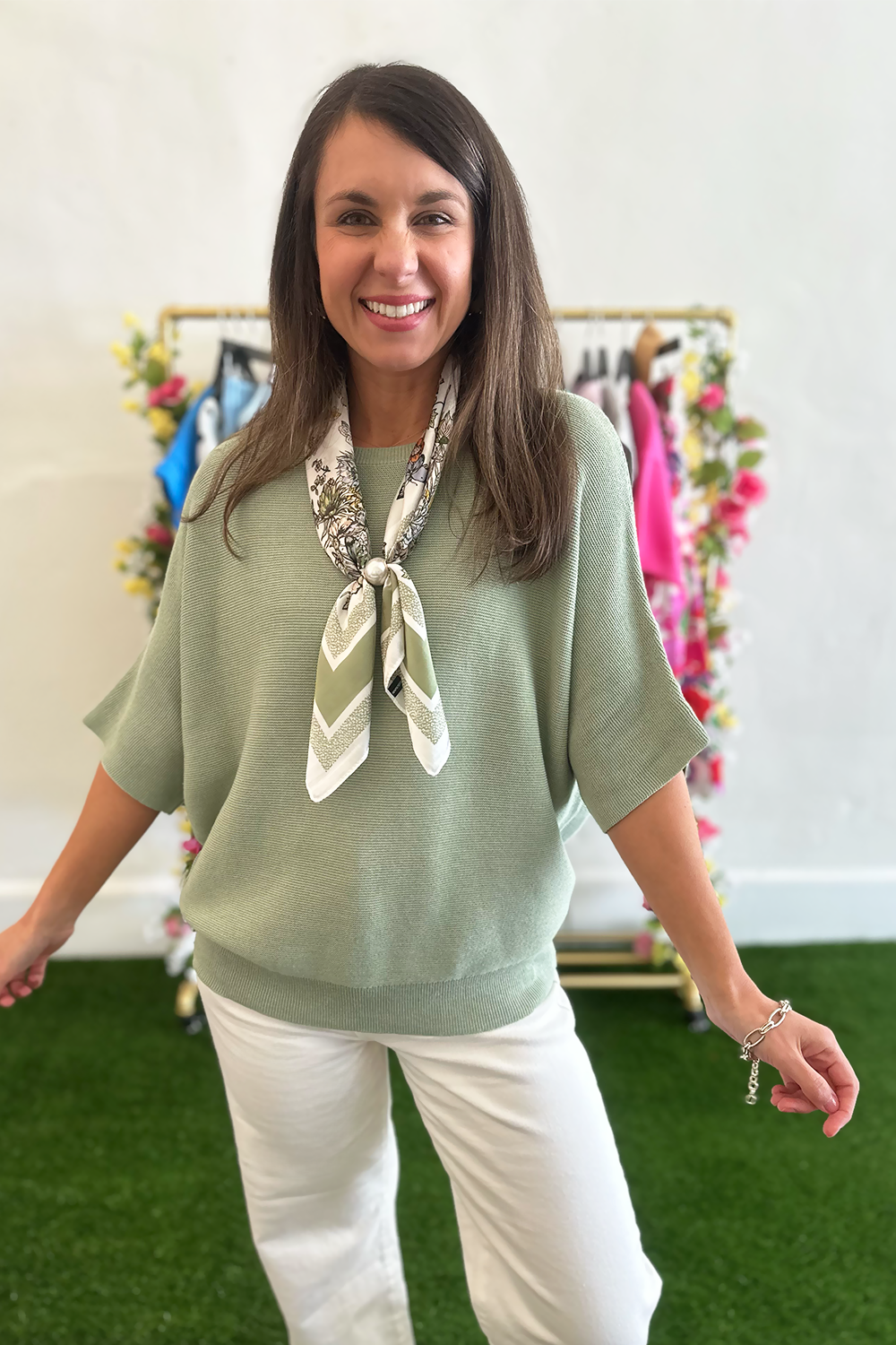 Embrace effortless comfort and style with this beautiful sage dolman sleeve knit top. The relaxed dolman sleeves and soothing sage hue create a laid-back yet sophisticated look that's perfect for everyday wear.