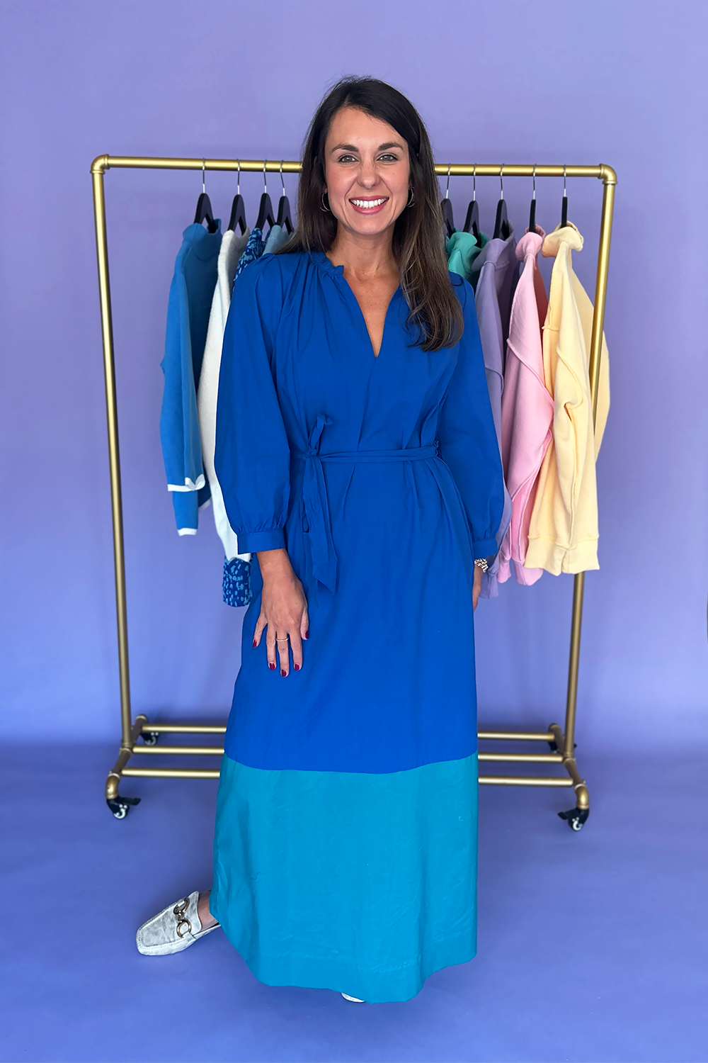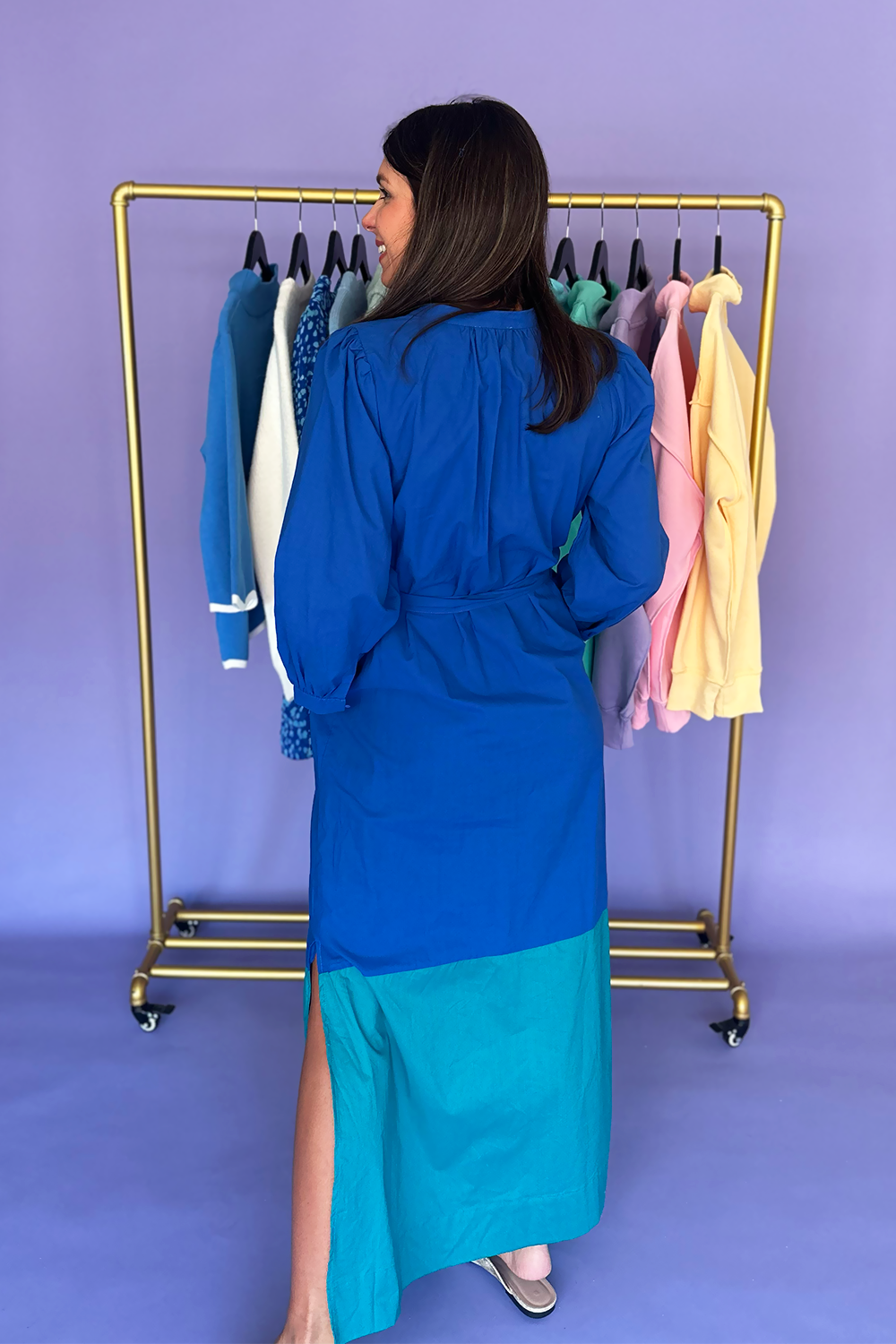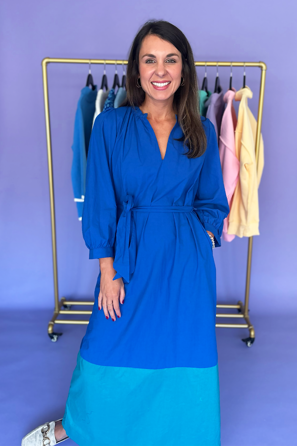 The Blue Aqua Color Block Maxi Dress is a stunning statement piece that combines vibrant hues with flowing comfort. Featuring a beautiful color block design in shades of blue and aqua, this maxi dress brings eye-catching style to any occasion. Model is wearing a size small.